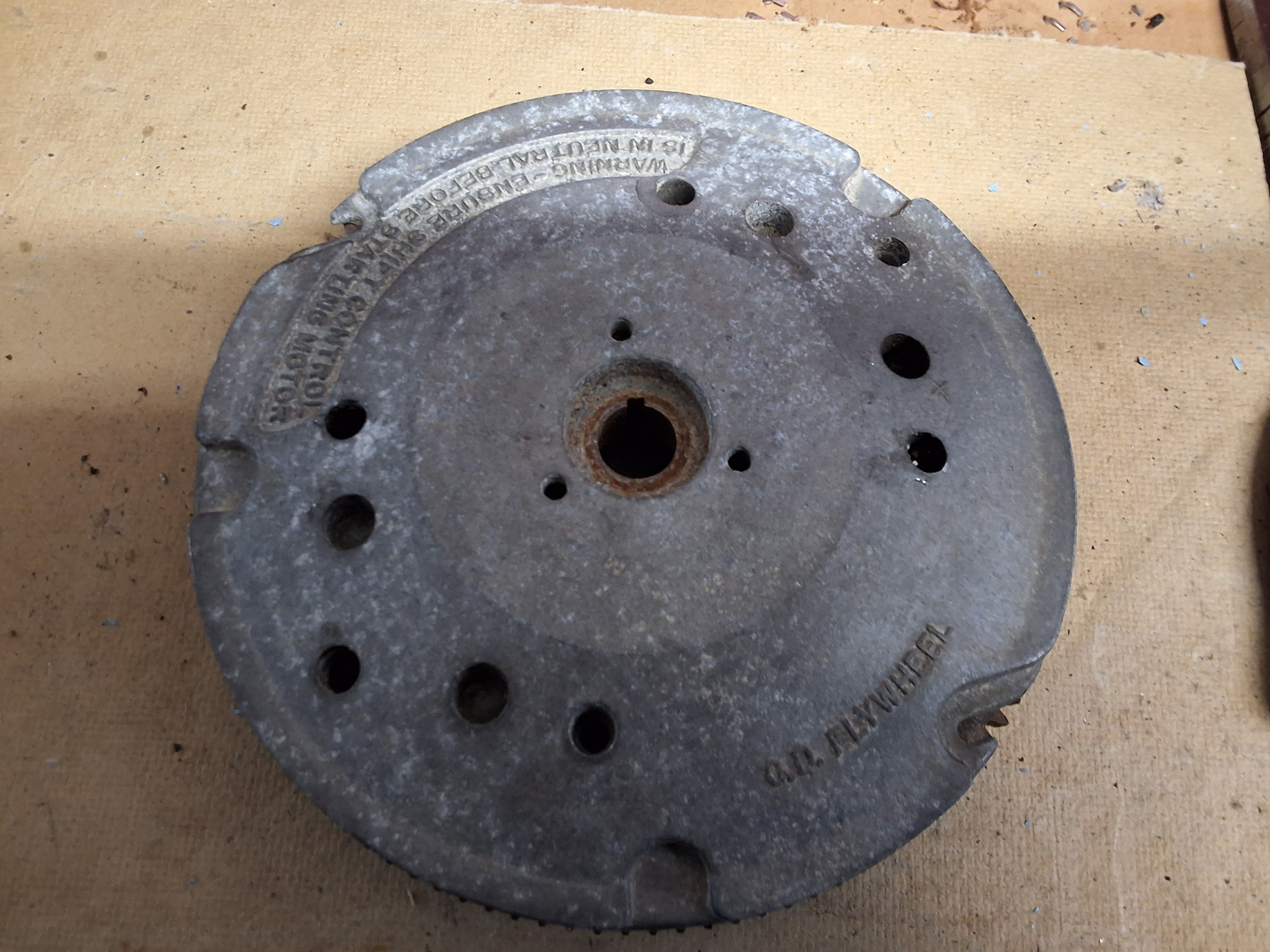 Off a 1982 Johnson 15hp model j15ecnc Ele tric start flywheel Pt no 582143 flywheel nut included Willneed a goid clean rusty See photo for application and condition