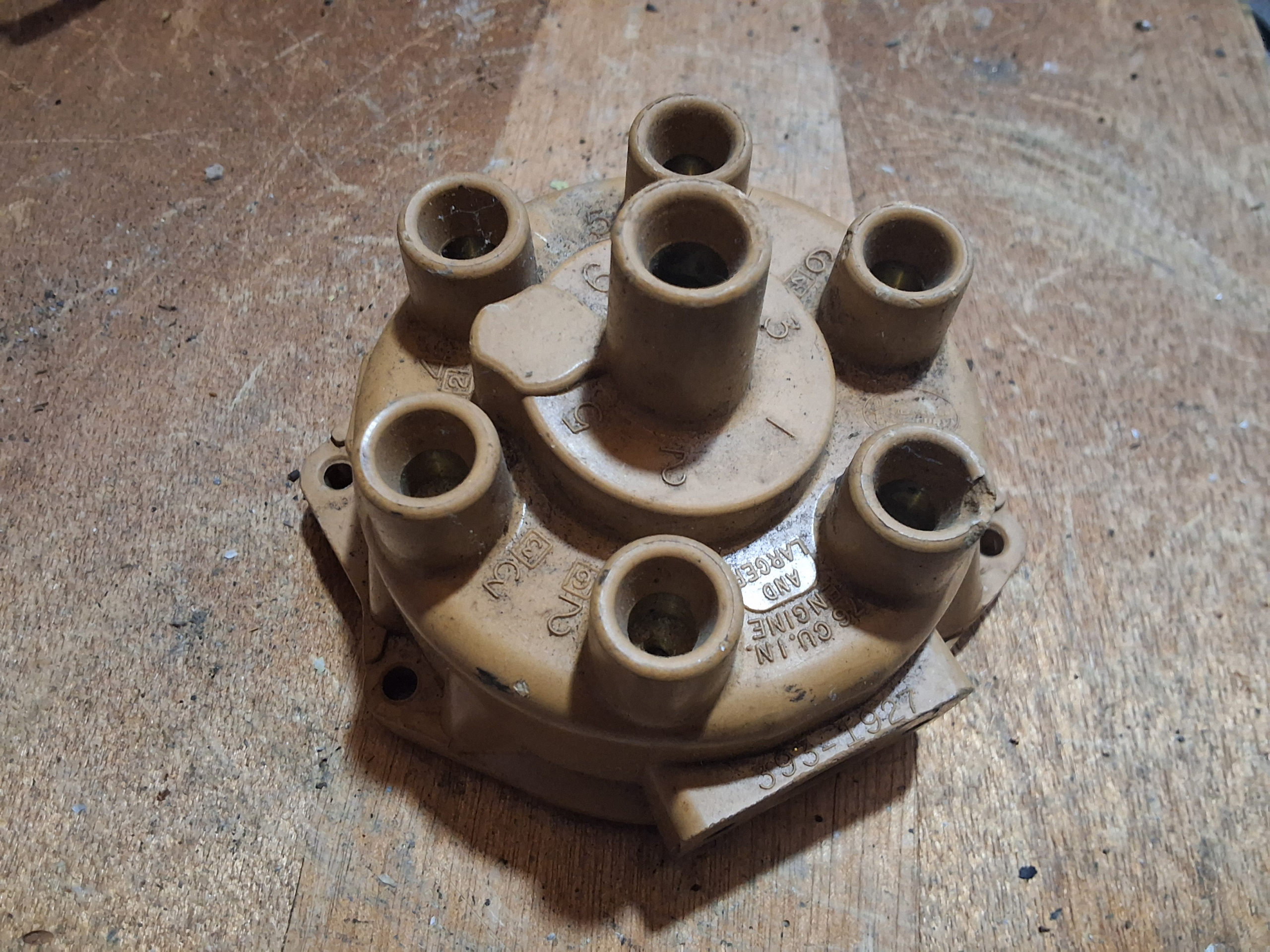 Used distributor cap pt no 393-1927 76cu inch and larger Looks new but has a chip in one output see photo And dirty needs cleaning