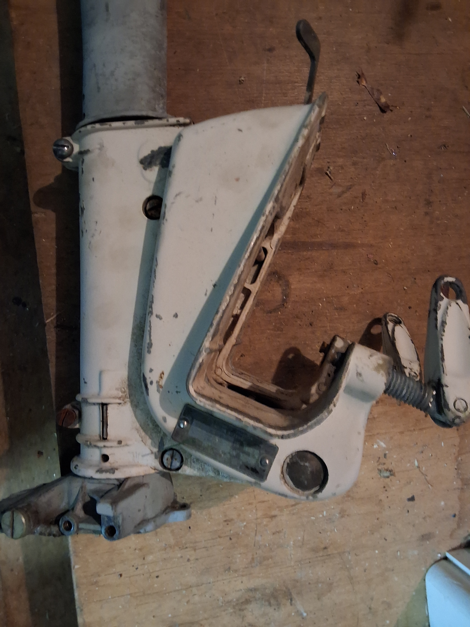 1960 johnson jw16 transom clamp assembly with swivel mount bracket and down tube