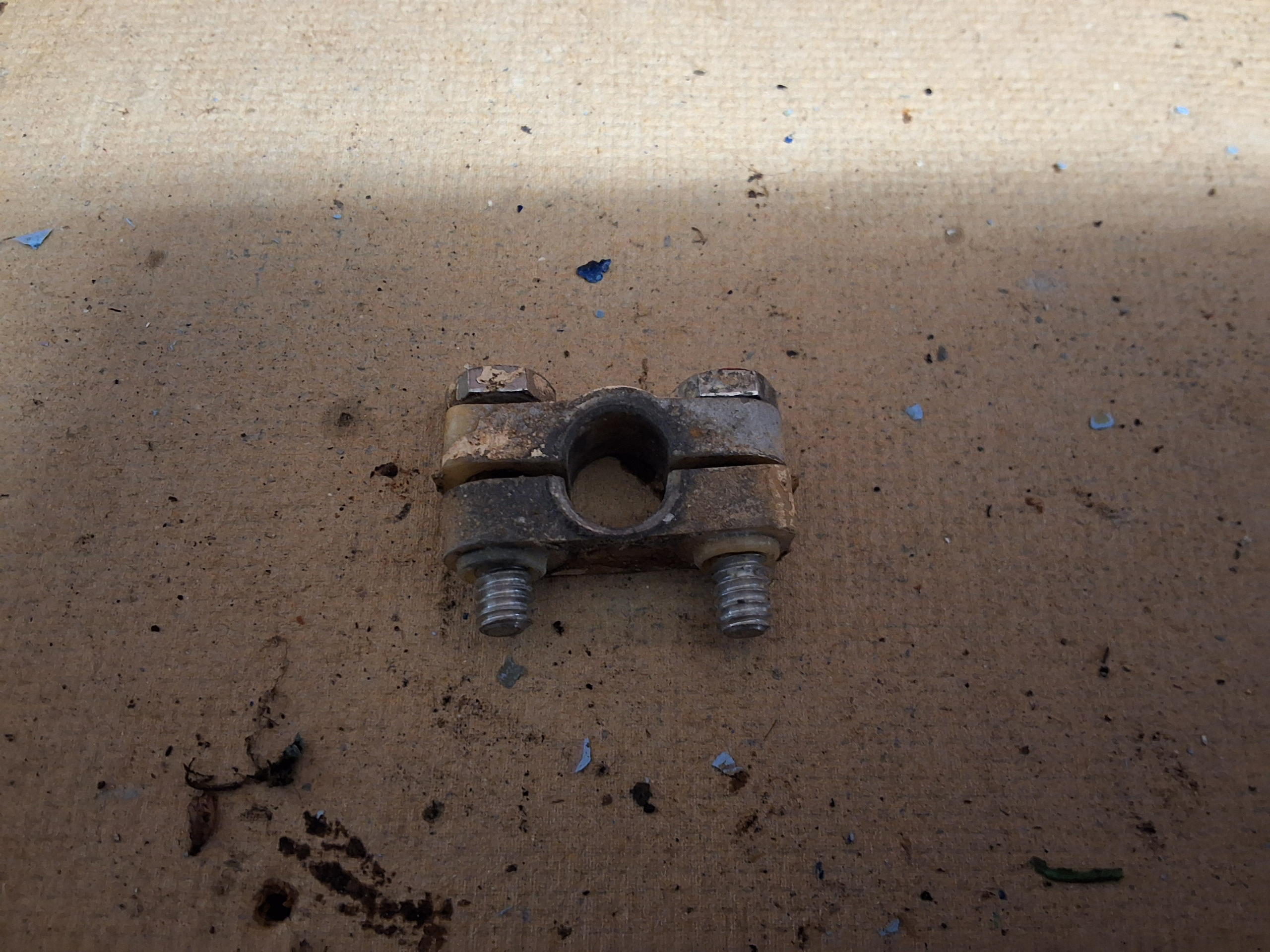 Off a Johnson 15hp model j15ecnc 1982 Control shaft clamp with screws Pt no 327588, 908159 See photo for application and condition